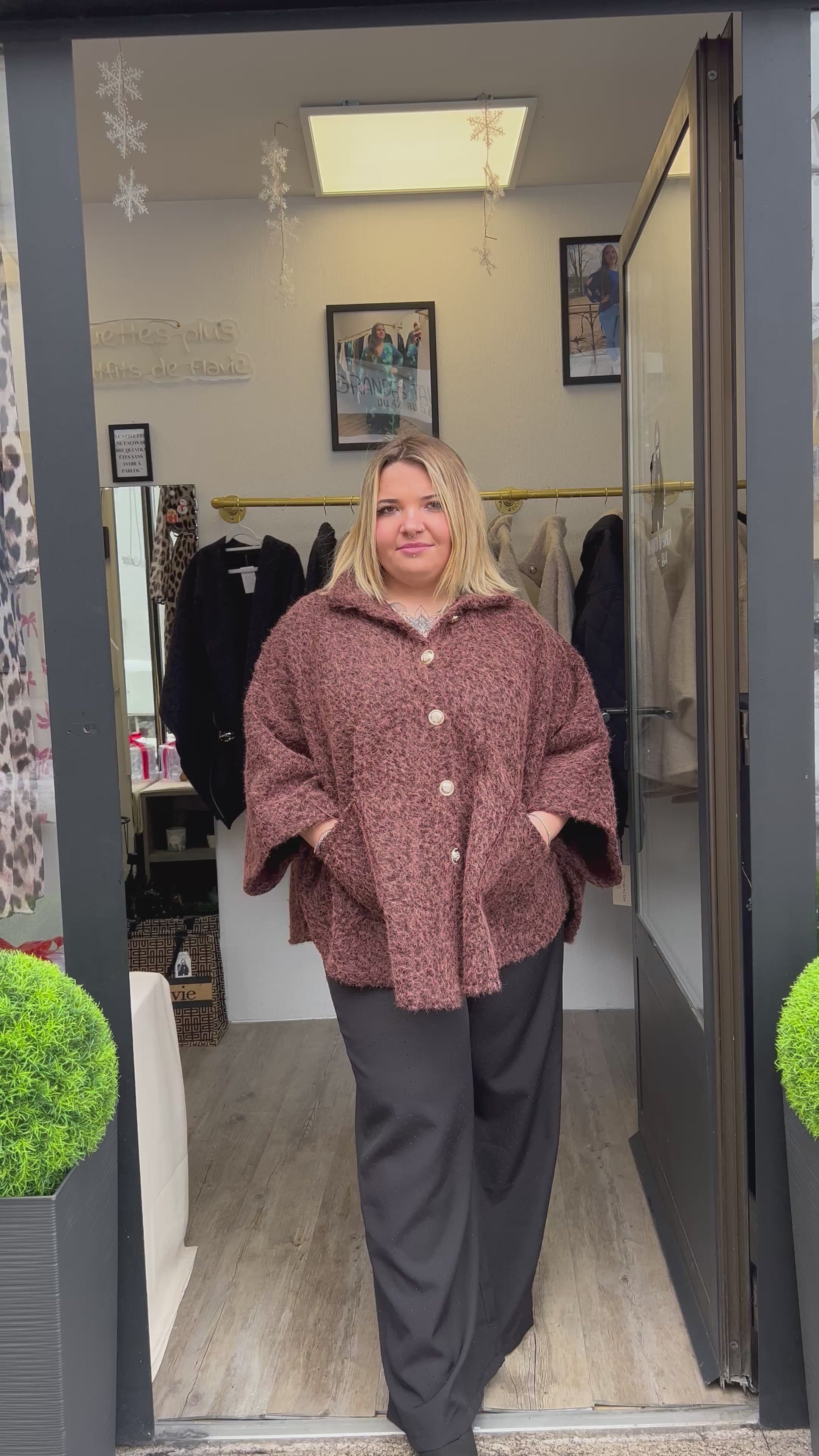 Chic et pratique, cette cape marron est parfaite pour ajouter une touche sophistiquée à vos tenues. Dotée de poches pour garder vos mains au chaud et de boutons pour un look soigné, elle combine style et confort avec élégance.